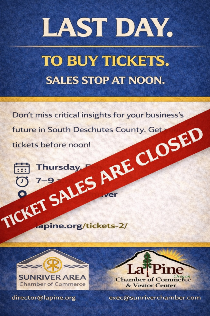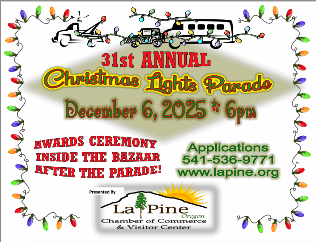 The mission of the La Pine Chamber of Commerce is to be the connecting force in the community, promoting commerce and tourism, making La Pine a prosperous and vibrant community to live, work and play.